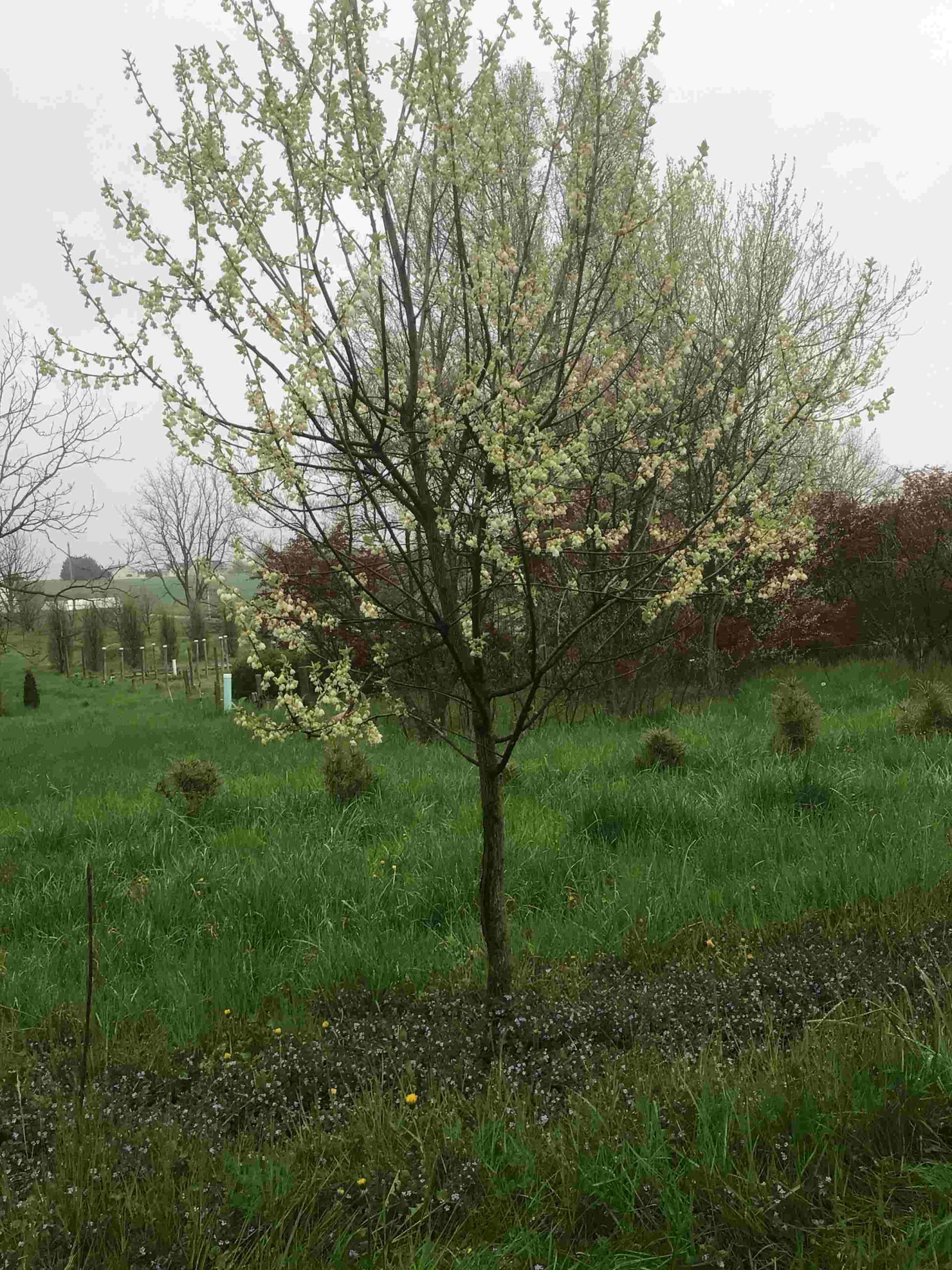 White bell-shaped flowers early spring. Yellow green leaves in summer. Yellow in fall. Good example of a native American plant used as an understory plant. I keep it single stem on the nursery but it may become multi stemmed if not pruned to one stem. caliper 2 1/2″; height 10′