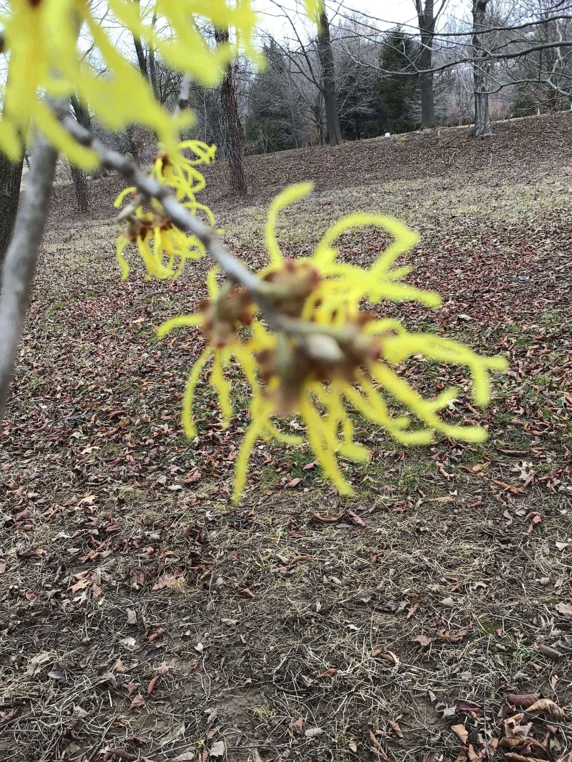 Deep yellow flowers . Plant remains neat in appearance as plant ages. 10′-12′. In ground.