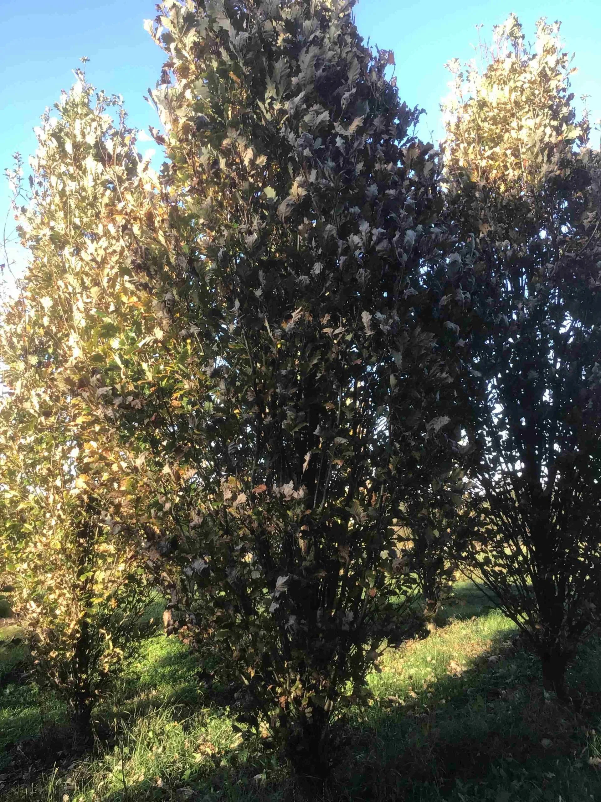 A nicely shaped, upright tree with a growth habit not as tight as some hybrid oaks. The Regal Prince Oak is notable for its resistance to powdery mildew and borers, strong vertical, columnar form, and tolerance to wind and ice. Holds its dense, fastigiate form into old age. Cross between swamp oak and English oak. Ball and burlap $170. 2 1/2″ dbh. 6′-8′ Also available 5″-6″ dbh, 12′-14′ in ground $310